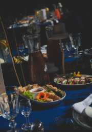 Dla fanów smaków śródziemnomorskich przygotowaliśmy Bufet Portofino, a amatorzy kuchni francuskiej rozsmakują się w propozycjach Bufetu Monte Carlo. Dla tych, którzy wolą lokalne i tradycyjne wyroby proponujemy Bufet Wiejski, a tym którzy wolą dalekowschodnie smaki proponujemy Sushi Bufet. Ciekawą propozycją jest również Bufet Sałatek Fusion serwowanych w mono porcjach. Możemy zaproponować też oryginalne kulinarne show. A na deser nasz cukiernik przygotuje dla Was swoje małe dzieła sztuki, które odnajdziecie w Słodkim Bufecie Tiffaniego – Mistrza jubilerów oraz Bufecie białej Damy Pavlovej. Ciekawa atrakcja może być także Fontanna Belgijskiej Czekolady oraz Bufet Lemoniad. Gwarantujemy, że nie sposób przejść obok nich obojętnie, a każdego z Gości zachwyci ich różnorodność, smak i estetyka wykonania.